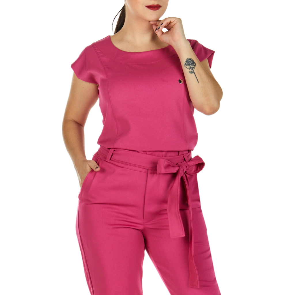 A Blusa Scrub Muscle possui um design prático, feito em tecido alfaiataria composto por 90% poliéster e 10% Elastano, fibra sintética que permite secagem rápida e não amassa facilmente. Tem modelagem estruturada e acinturada, manga curta muscle embutida e gola redonda.