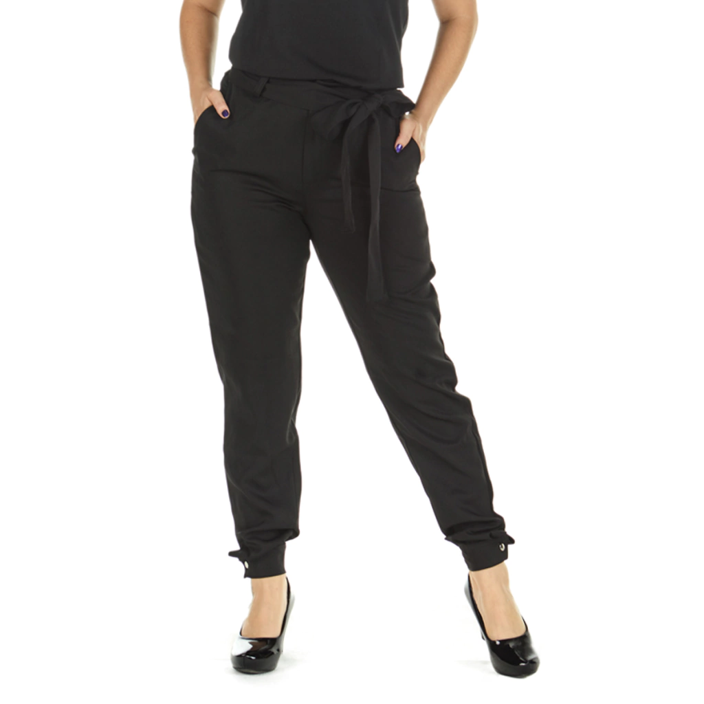 A Calça Punho Scrub possui um design prático, feito em tecido alfaiataria composto por 90% poliéster e 10% Elastano, fibra sintética que permite secagem rápida e não amassa facilmente. Modelo jogger com cinto e punho na barra, fechado com botão de pressão prateado. Na frente possui fechamento em zíper e botão, e bolsos faca. Na parte de trás, possui elástico no cós para melhor ajuste ao corpo e bolsos alfaiataria com vista.
