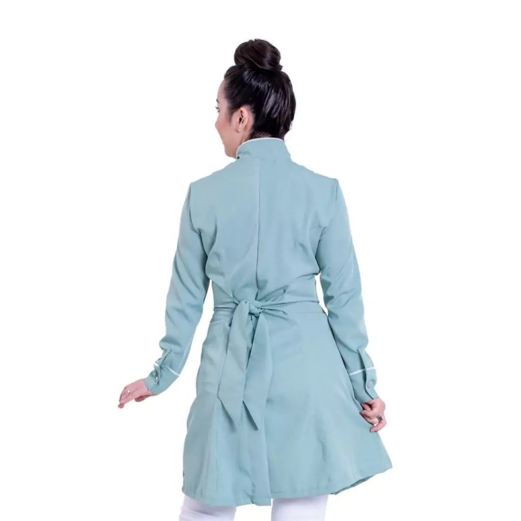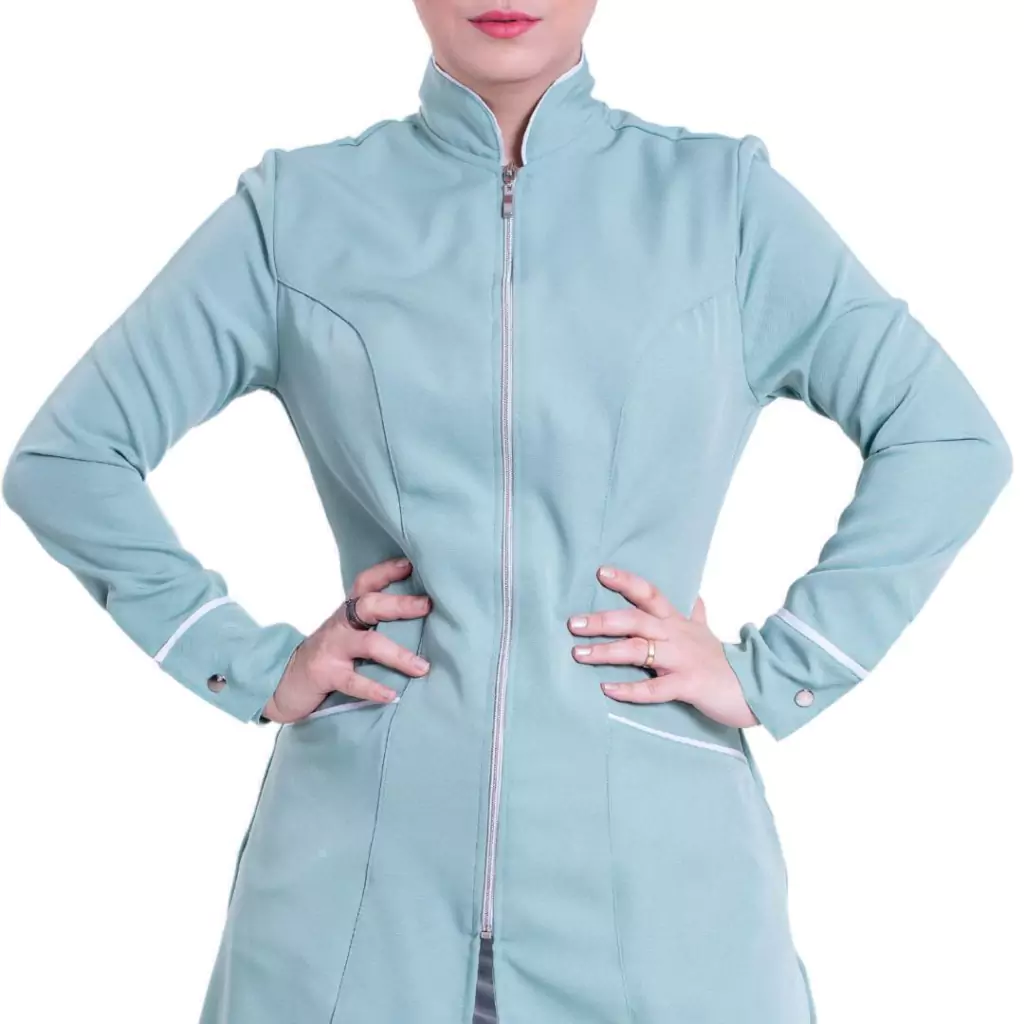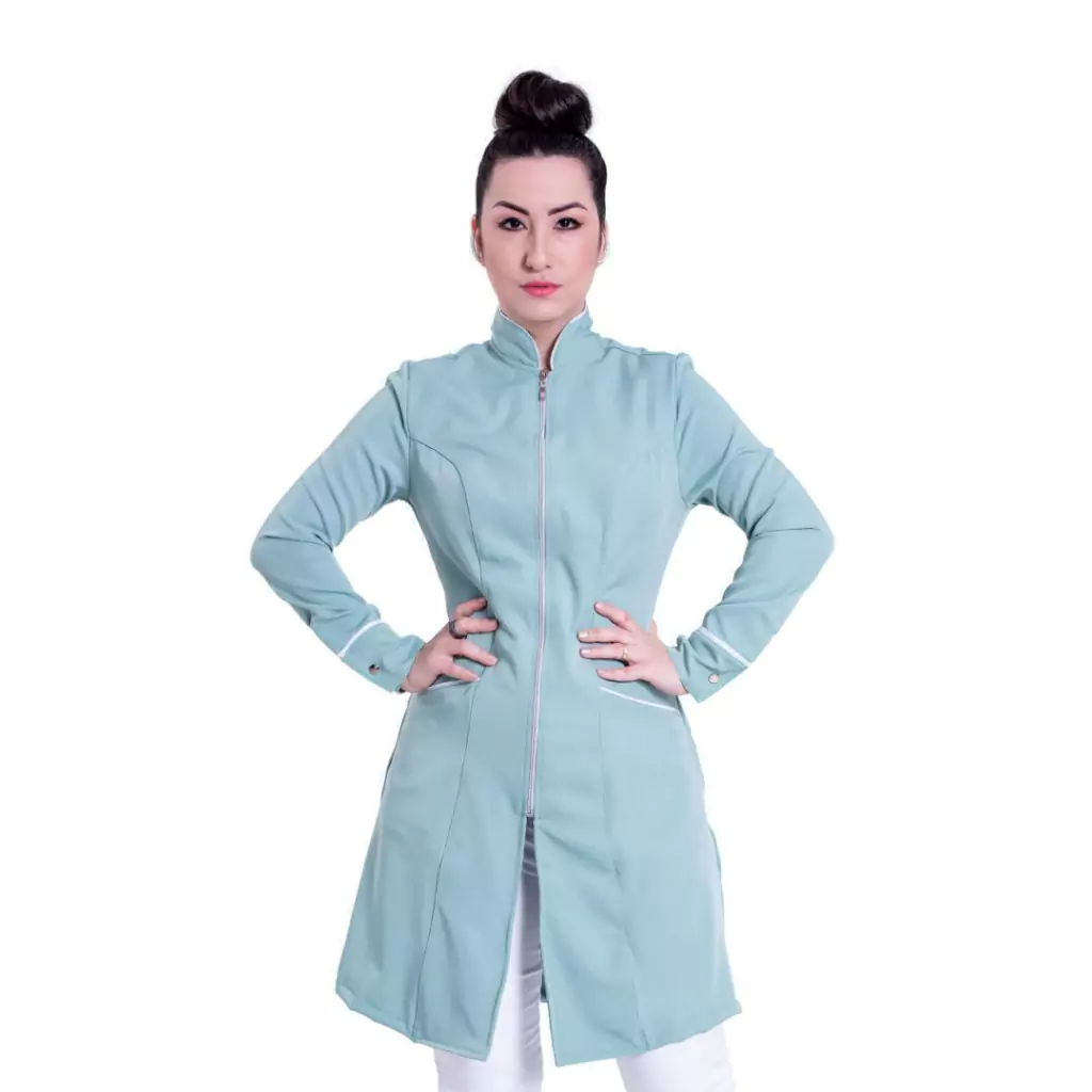 O Jaleco Feminino é confeccionado em tecido 90% poliester 10% elastano, lindo para usar no seu dia a dia, em qualquer atividade de trabalho, como esteticistas, micropigmentadoras, dentistas, médicas, farmacêuticas, fisioterapeutas, veterinários, entre outras. Seu modelo é acinturado com gola padre, manga longa e botão em prata cromado no punho, fechamento em zíper proporcionando conforto, elegante e estiloso, traz ao seus dias de trabalho charme.