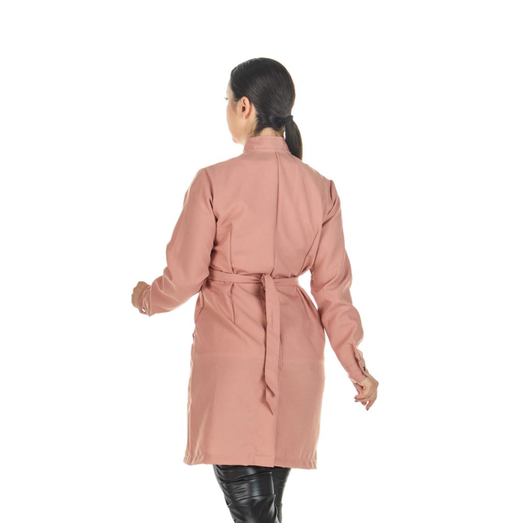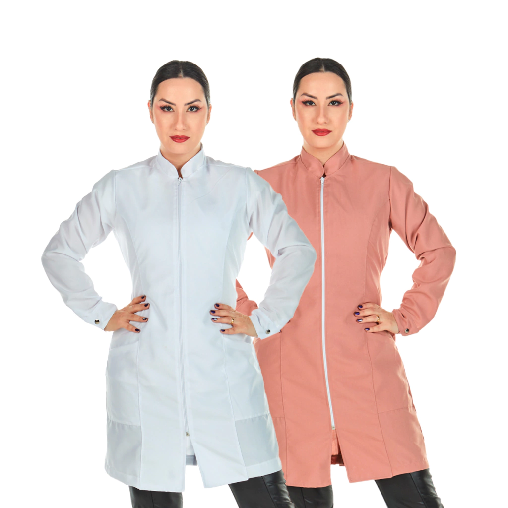 O Jaleco Essencial Zíper conta com uma modelagem slim, acinturada, com amarração traseira que possibilita melhor ajuste ao corpo. Possui fechamento com zíper na parte frontal e botão de pressão nos punhos.