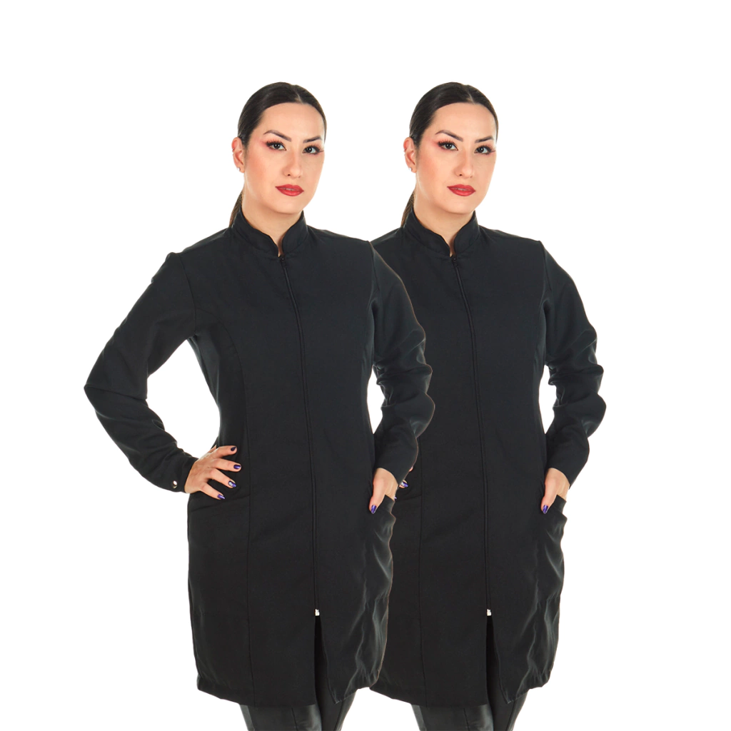 KIT COM 2 JALECOS ESSENCIAL ZÍPER MANGA LONGA PRETO